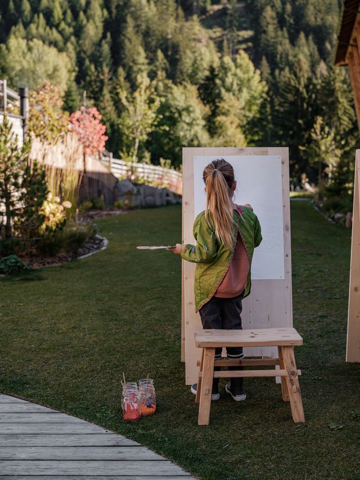 Ein einzigartiges, naturnahes Kinderprogramm rundet das Erlebnis ab. Dazu gibt es großzügige Rückzugsmöglichkeiten in freier Natur, Abkühlung in den Pools mit Bergblick und viele innige Momente im Kreis der Familie. Alle Wohnräume wurden speziell für Familien gestaltet und bieten einen Ort der Ruhe und Erholung. Feine Naturmaterialien und SPA-ähnliche Bäder sorgen für Wohlbefinden. Beim Lesen oder Spielen vor dem Kaminfeuer oder auf den großzügigen Terrassen mit Bergblick lassen sich die Erlebnisse des Tages Revue passieren.