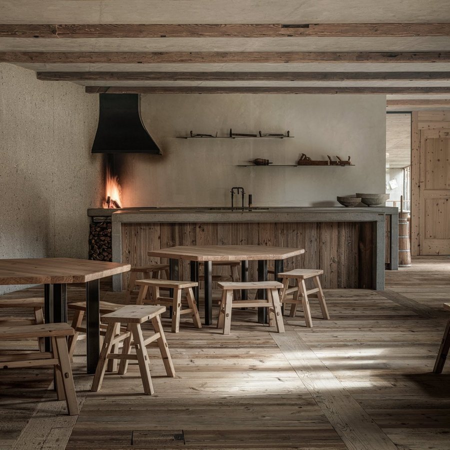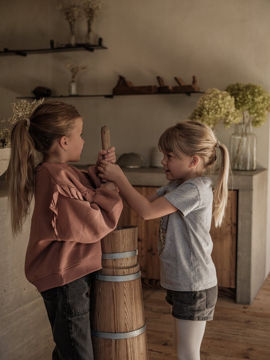 As can be seen in the picture, the interior of the manufactory has a unique exposed concrete kitchen, which is partly covered with local larch wood. The focus of the company is the essential connection with our nature and its rural values. These are integrated into all areas of the business and lived out accordingly. Tying wreaths, carving funny figures or making local products like jam or butter, which can be tasted without further ado and are even on the breakfast buffet the next day! All this and much more, you and your children can experience in the framework of the children's program.